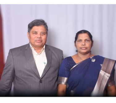 Pastor Sharon Jayanthi Pala stands beside him in ministry as a devoted prayer warrior and support, encouraging believers and strengthening families in the faith.